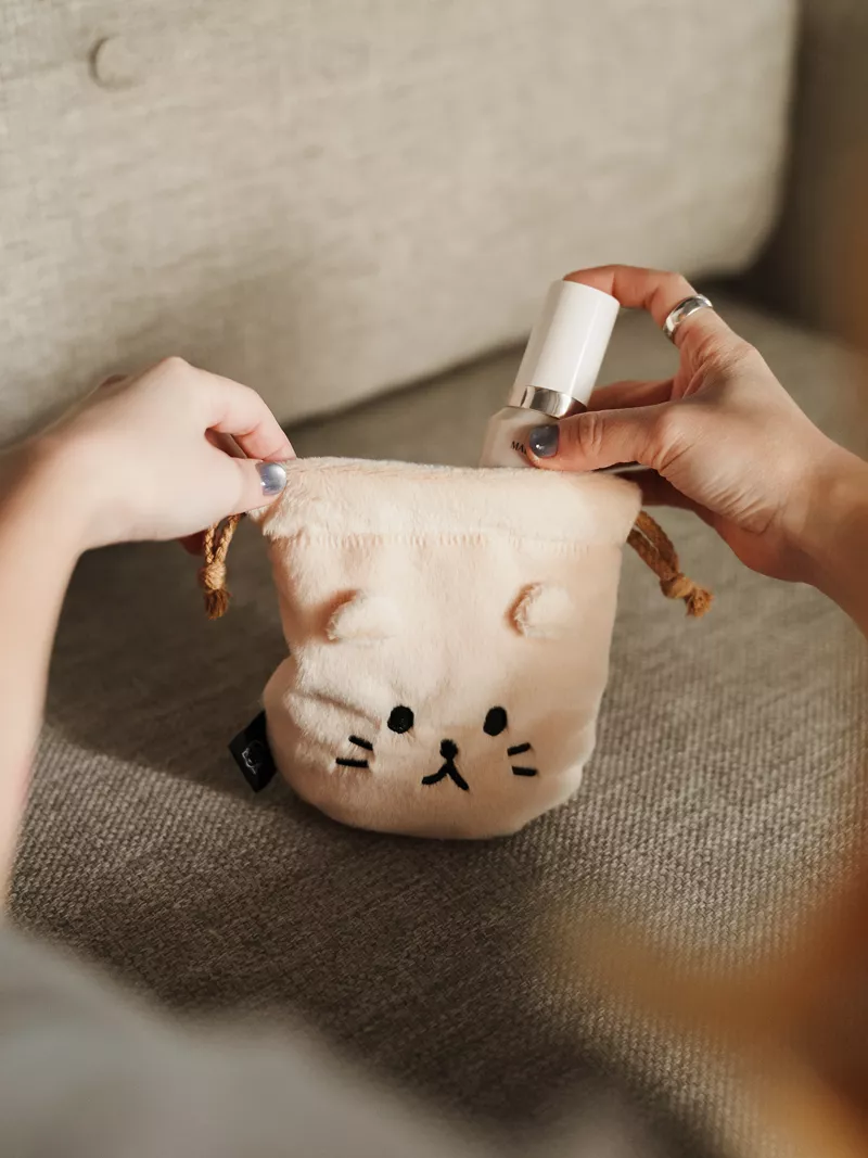 超級可愛的束口袋翻過來翻過去都有圖案可以是阿芬也可以是牙齒一個束口袋兩種滿足 ✨容量超~~~大裝化妝品、充電器都非常可以~👌🏻