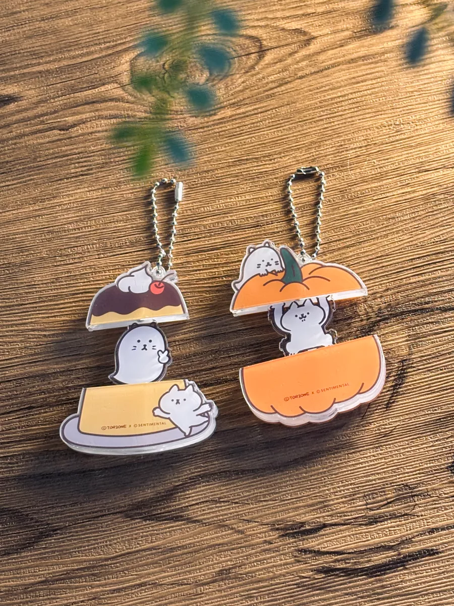 布丁與南瓜造型,拉出來會出現貓貓鬼與反應過激的貓,